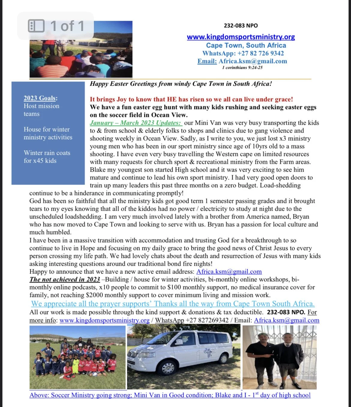 ministry been the tool we used to share the Gospel. My soccer coaching I use mainly to connect with many not yet believers from ages 8 years – 29 years soccer players both males and females during these months.